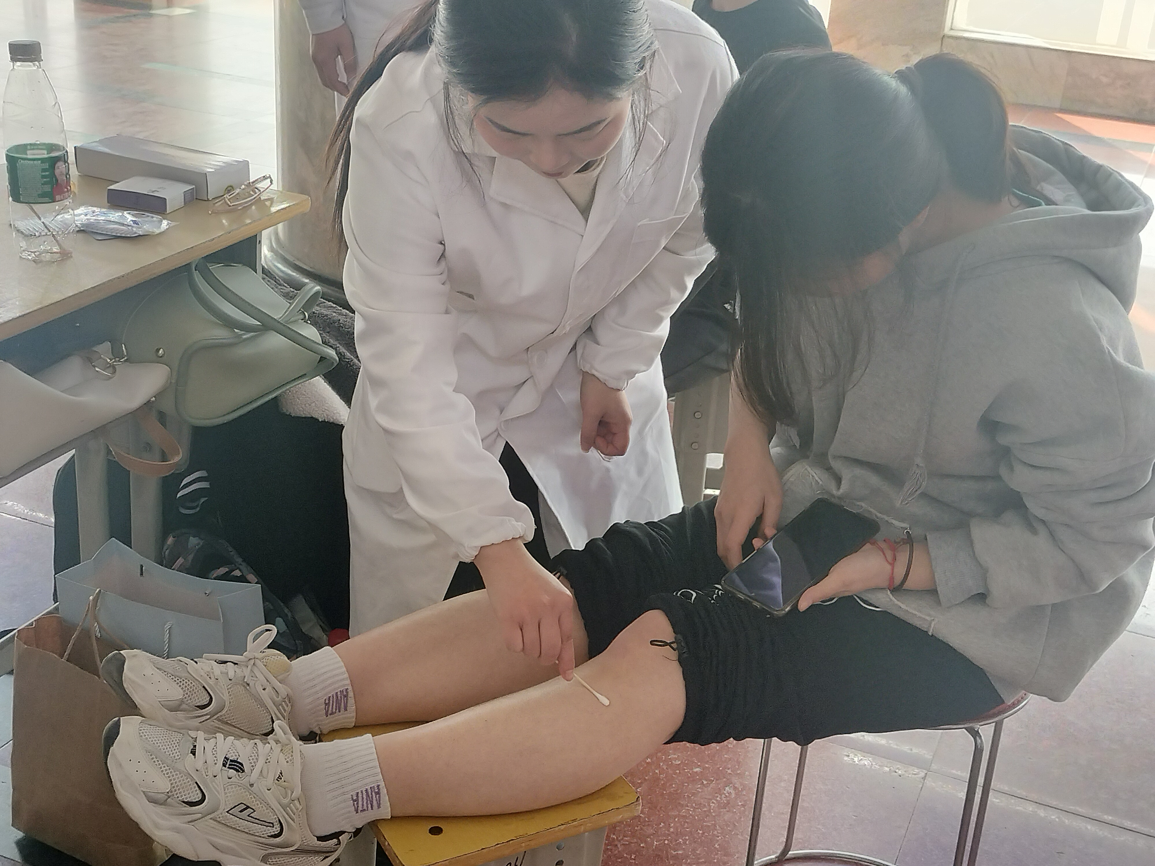 仁心如花,撒播着温暖和希望。志愿者们一大早就到达活动地点,有序对场地进行布置。活动过程中,志愿者们对前来义诊的老师和同学们积极进行引导,热情为他们服务,有条不紊地为他们测血压、测视力、量身高体重,检查色盲及色弱......同时,康复治疗专业的志愿者们热心地为同学们提供针灸、艾灸等志愿服务。此外,志愿者们针对性地向每位师生的身体状况提出科学的建议,传播一些有利于健康的小常识。