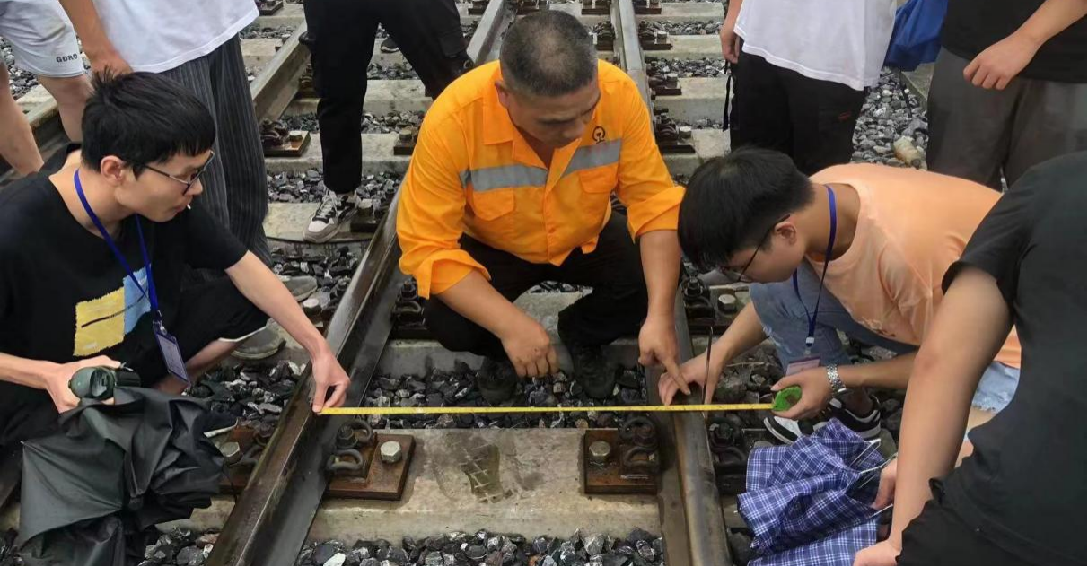 企业师傅指导学生使用道尺测量轨矩