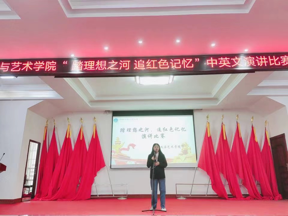 风雨砥砺,岁月如歌。为了激发我院大学生的爱国热情,发扬爱国主义精神,让大学生重温红色记忆,树立正确的理想信念。11月5日下午,人文与艺术学院在航母办公楼一楼会议室举办“踏理想之河,追红色记忆”中英文演讲比赛决赛。人文与艺术学院党总支书记沈飚、马克思主义学院党支部书记 、人文与艺术学院党总支副书记辛敬凤、人文与艺术学院副院长刘彪,辅导员周永、赵珊及300余名学生参加,管小六老师、刘佩老师、王芳老师、胡娜老师、龙晓芳老师担任比赛评委。