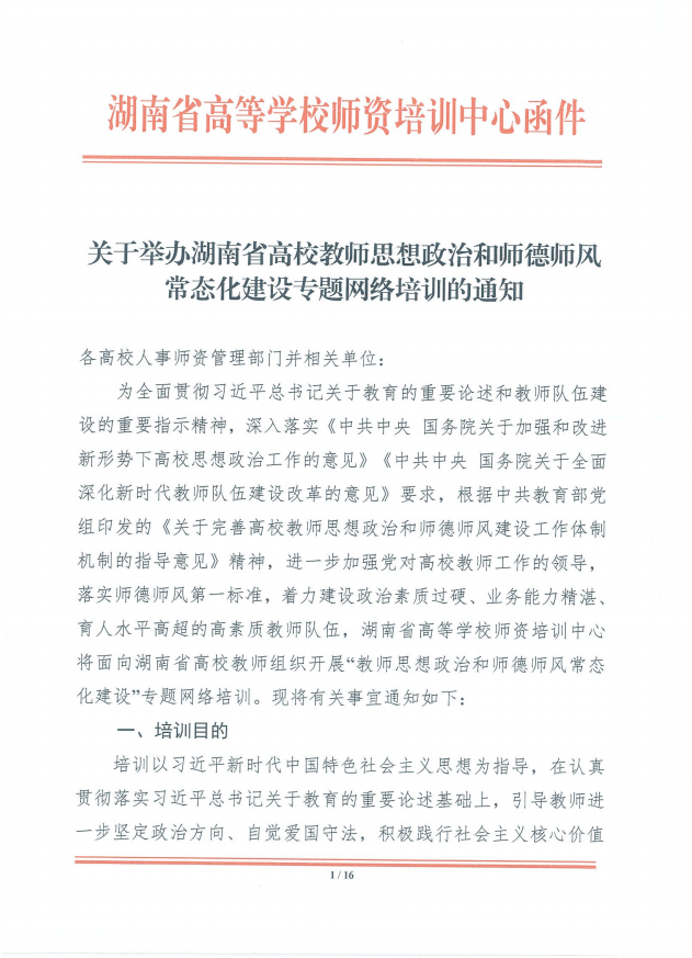 关于举办湖南省高校教师思想政治和师德师风常态化建设专题网络培训的通知.pdf