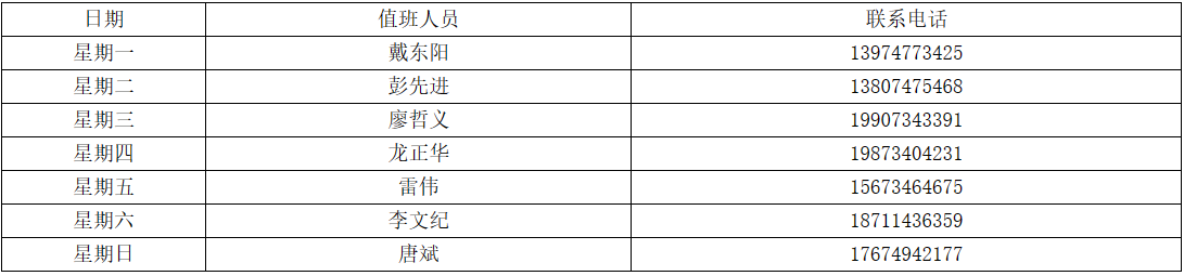 注:1、校园报警电话:07348815004,值班室负责人:戴东阳。