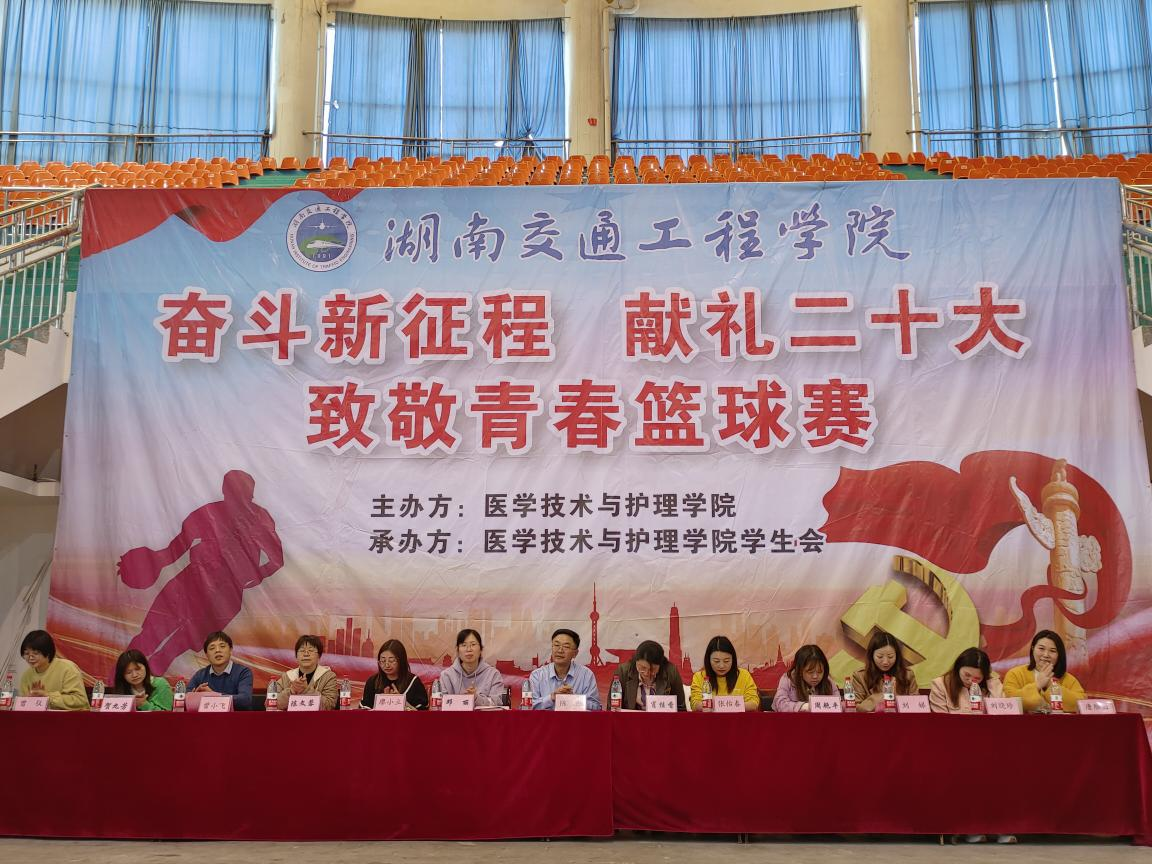 因疫情原因,医学技术与护理学院上学期的“奋进新征程,献礼二十大”致敬青春篮球比赛闭幕式推迟于2023年3月10日在体育馆举行。参加本次闭幕式的有医护学院全体党政领导老师、两会一中心学生干部、全体参赛队员。