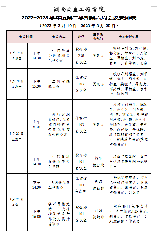 beat365唯一官方网站2022-2023学年度第二学期第六周会议安排表