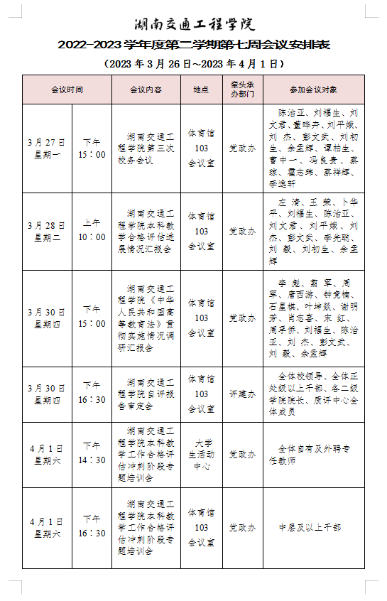 beat365唯一官方网站2022-2023学年度第二学期第七周会议安排表