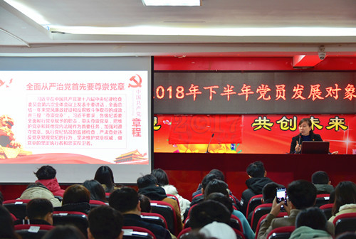 本网讯(通讯员摄影麻珂)12月8日上午,beat3652018年下半年党员发展对象开班典礼在体育馆101会议大厅举行,党委书记苏玲,党委副书记李先聪,党委委员、党务工作部副部长邓丽,党委宣传部副部长李建华出席开班典礼,近200名党员发展对象参加开班仪式。李先聪主持会议。 会上,苏玲书记作培训动员讲话,向参训学员提出了三点要求,一是要提高认识。在座的参训学员都是从入党积极分子培训班中脱颖而出的先进分子,怀揣着美好的追求和强烈的入党愿望参加此次培训班,要提高政治学习意识,高度重视这次党课培训,在思想上不能有半点怠慢和马虎。二是要正确对待。做到身到心到情到,不能随意请假,更不能无故缺席,对党的理论路线方针政策要有情感认同,做到爱党忧党兴党护党,时刻以一个党员标准严格要求自己。三是要取得实效。结合国家时事、社会实际、个人自身现实条件对照党章条款,真学真信真用,学懂弄通悟透,做到熟知理论观点、掌握主要内容、了解基本要求,注重理论联系实践,真正使自己成为一个有道德、讲品行的时代新人。 开班典礼后,苏玲书记以《深入学习新党章,巩固树立党章意识》为题给参训学员上了一堂内涵丰富、精彩生动的党课,从党章的概述、历次党代会党章的修订历程到十九大新党章的修订内容进行了详细讲解和深入剖析。讲课中,苏玲书记理论联系实际,运用党的理论和生活中的鲜活案例,对党的理论知识进行了生动解读,加深了在座党员发展对象对修订党章的新内容新要求的理解与掌握,强化党员党章意识,动员和激励全体党员发展对象继承和发扬党的优良传统和作风,为参训学员在今后的学习工作中更好的遵守党章党纪党规、履行党员义务、发挥党员先锋模范作用打下了坚实的思想基础。 苏玲书记的讲课,深入浅出,旁征博引,使参训学员对新党章所蕴含的丰富内容有了全新的理解和把握,对党章的丰富完善和发展历程有了全方位的了解和掌握,进一步激发了全体学员研读学习党的基本理论知识的热情,对学员端正入党动机、锤炼党性修养、牢记党的宗旨、坚定理想信念、牢记初心使命、争当时代新人起到了巨大的激励和推动作用。学员们纷纷表示,在以后的学习生活中,要努力做到在思想上入党,时刻以党员的标准严格要求自己,听党话,跟党走,争取早日踏进党组织的大门。(责任编辑李建华) |
