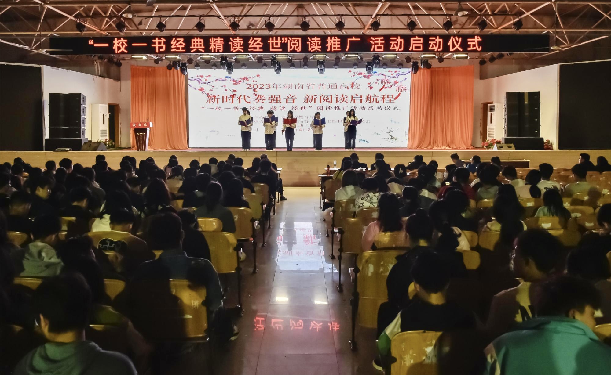 本网讯(记者 赵红深 摄影 李建华)根据湖南省教育厅《关于做好2023年全省普通本科高校“一校一书——经典、精读、经世”阅读推广活动的通知》要求,beat3652023年“一校一书——经典、精读、经世”阅读推广活动已于4月正式启动。4月27日晚,学校在大学生活动中心举行2023年“一校一书”阅读推广活动启动仪式,党委副书记李先聪到会并致辞,副校长余孟辉宣读学校2022年“一校一书”阅读推广活动表彰文件。各二级学院党总支书记、副书记、学生支部书记,党务部门负责人,图书馆全体成员,全体辅导员,团学干部代表、优秀学生代表近2000人参加活动。校团委书记漆在林主持。