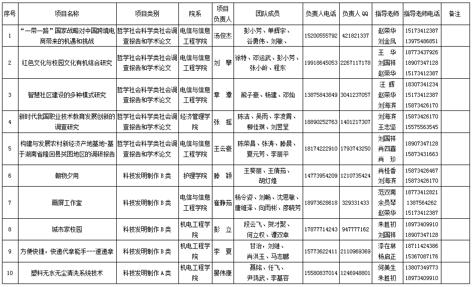 根据第十三届“挑战杯”湖南省大学生课外学术科技作品竞赛规则和评审要求,经学校终审决赛评审,拟推荐以下作品参加湖南省竞赛,现将作品名单(排名不分先后)公示如下: