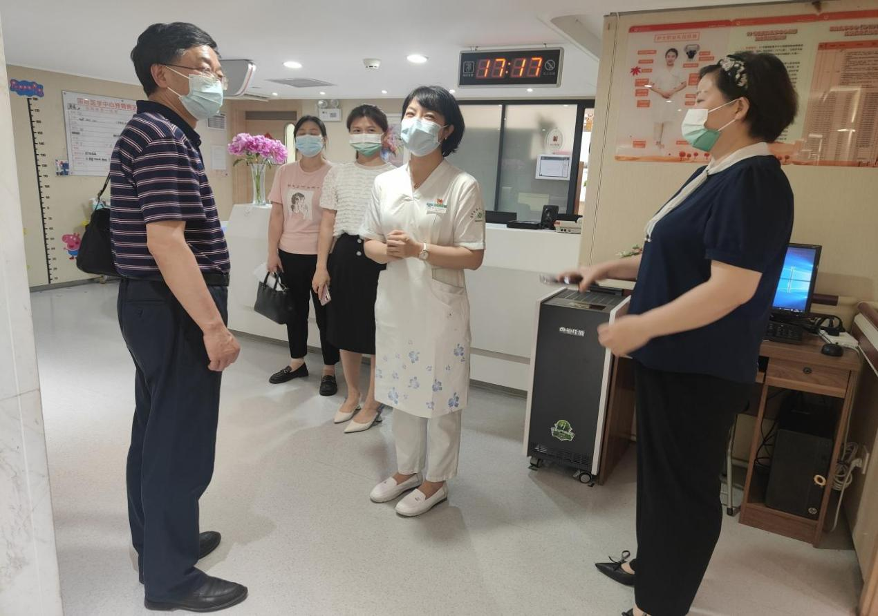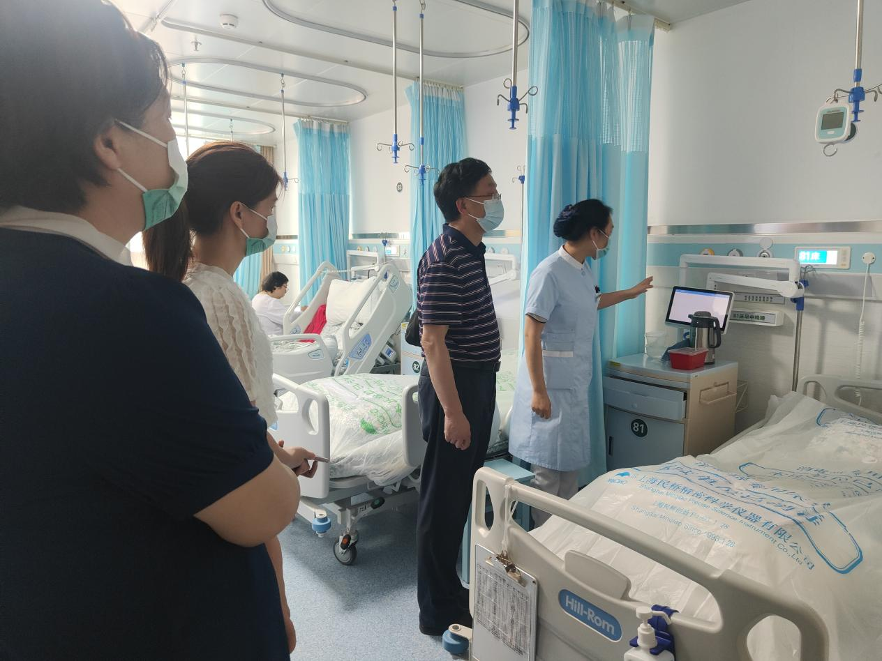 图为在医院护理部的陪同下参观医院5G智慧病房。