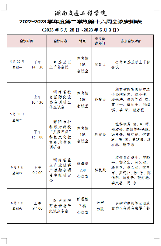 beat365唯一官方网站2022-2023学年度第二学期第十六周会议安排表