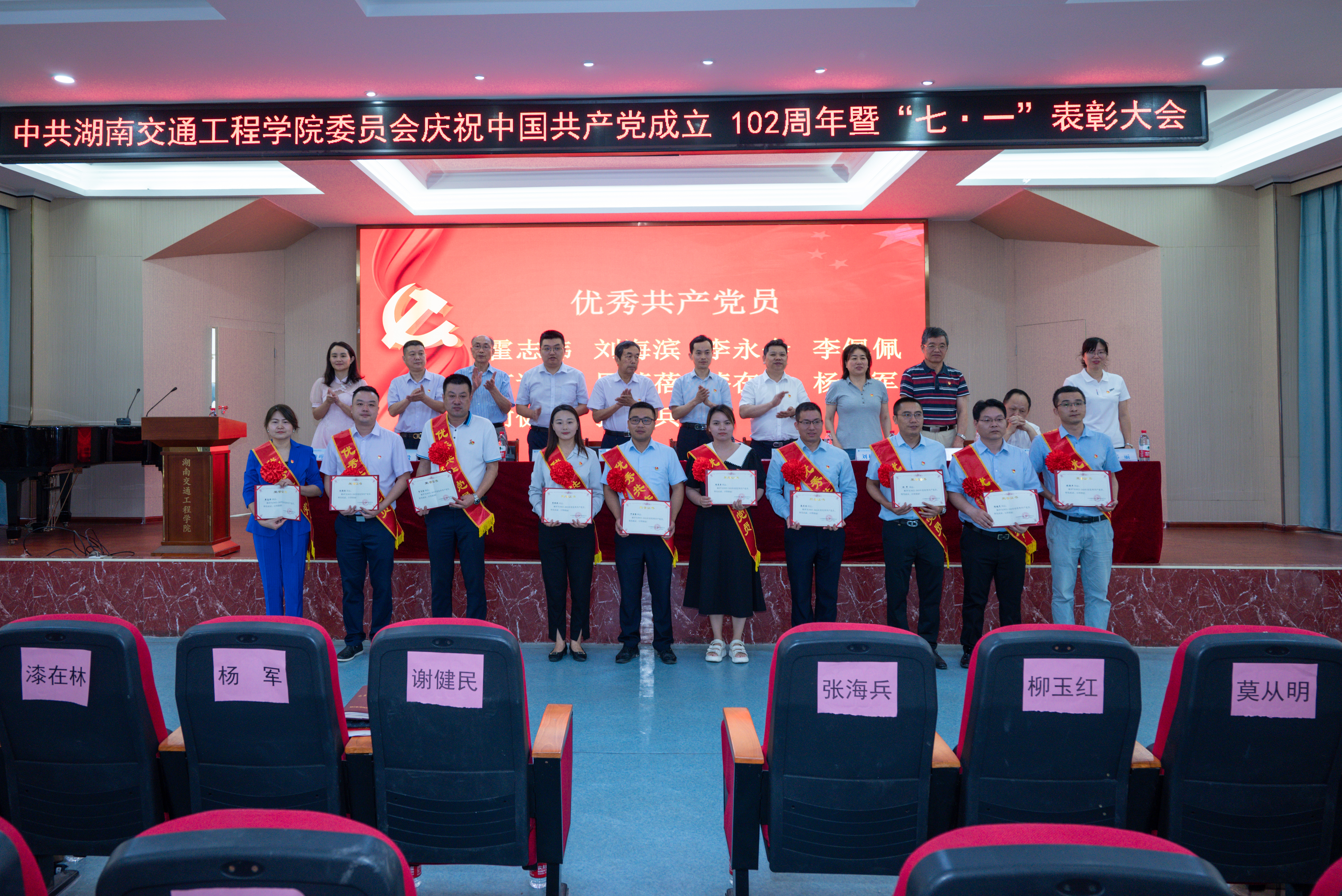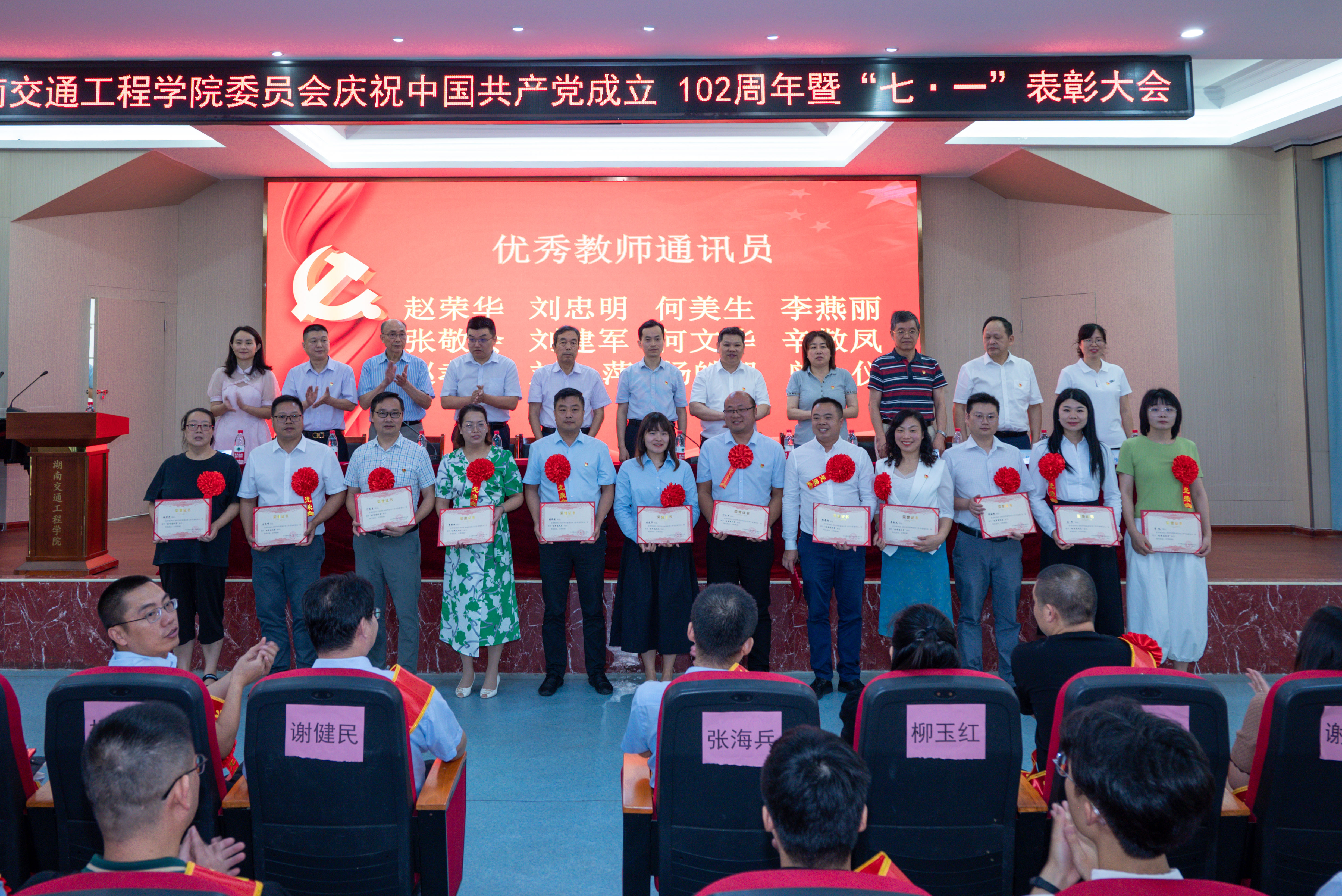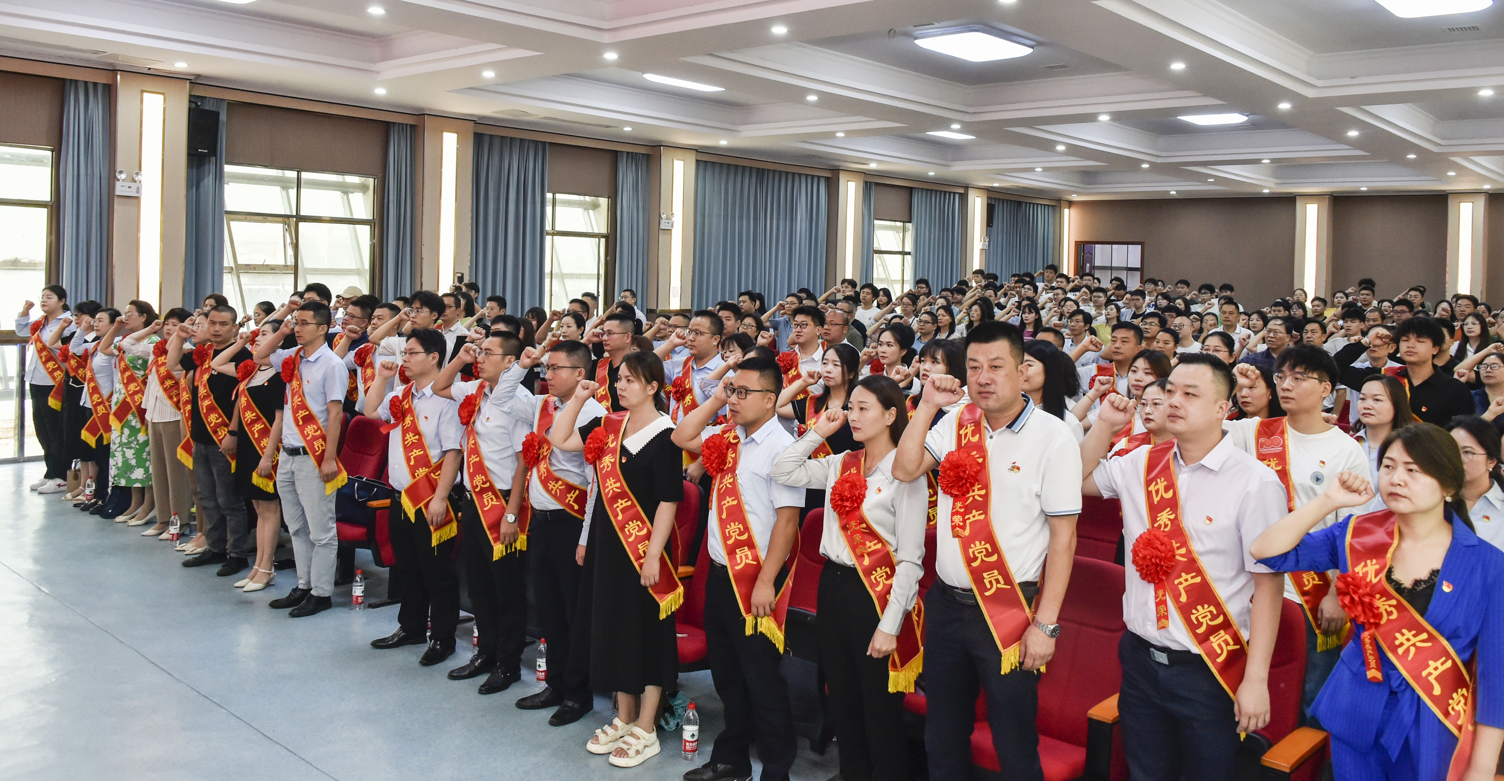 6月24日上午,学校在航母楼101会议室隆重举行庆祝中国共产党成立102周年暨“七一”表彰大会,庆祝党的生日,表彰先进集体和优秀个人,激励学校各级党组织和广大党员不忘初心、牢记使命,担当奋进。董事长刘福生,党委书记刘文君,副董事长、执行校长刘杰,党委委员、副董事长刘秋菊,党委副书记李先聪,党委委员、常务副校长彭文武,党委委员、纪委书纪刘毅,副校长刘初生、余孟辉,董事董晔卉、党委委员邓丽出席大会并颁奖。学校中层以上党政负责人,党员和入党积极分子代表,受表彰的先进集体、先进个人共200余人参加会议。李先聪主持大会。