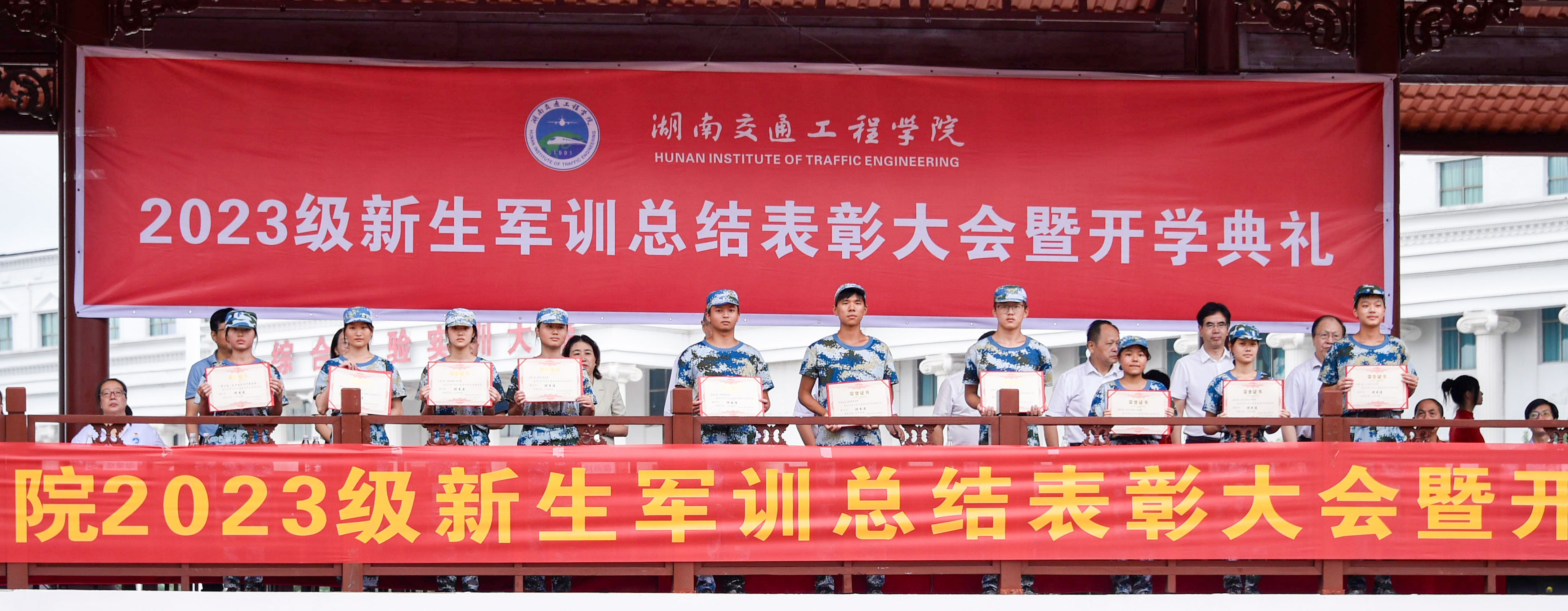 金秋九月,秋高气爽,丹桂飘香。经过15天的艰苦训练,2023级新生圆满完成了军训任务。9月15日上午,学校在田径运动场隆重举行2023级新生军训总结表彰大会暨开学典礼。校长陈治亚、副董事长刘杰、刘秋菊, 常务副校长彭文武、纪委书记刘毅、副校长余孟辉、董事董晔卉, 党委委员邓丽、赵荣华、罗斐出席。相关职能处室负责人,各二级学院院长、党总支书记(副书记),全体教官、辅导员和教师代表以及近4000名2023级新生参加了典礼。典礼由刘杰主持。