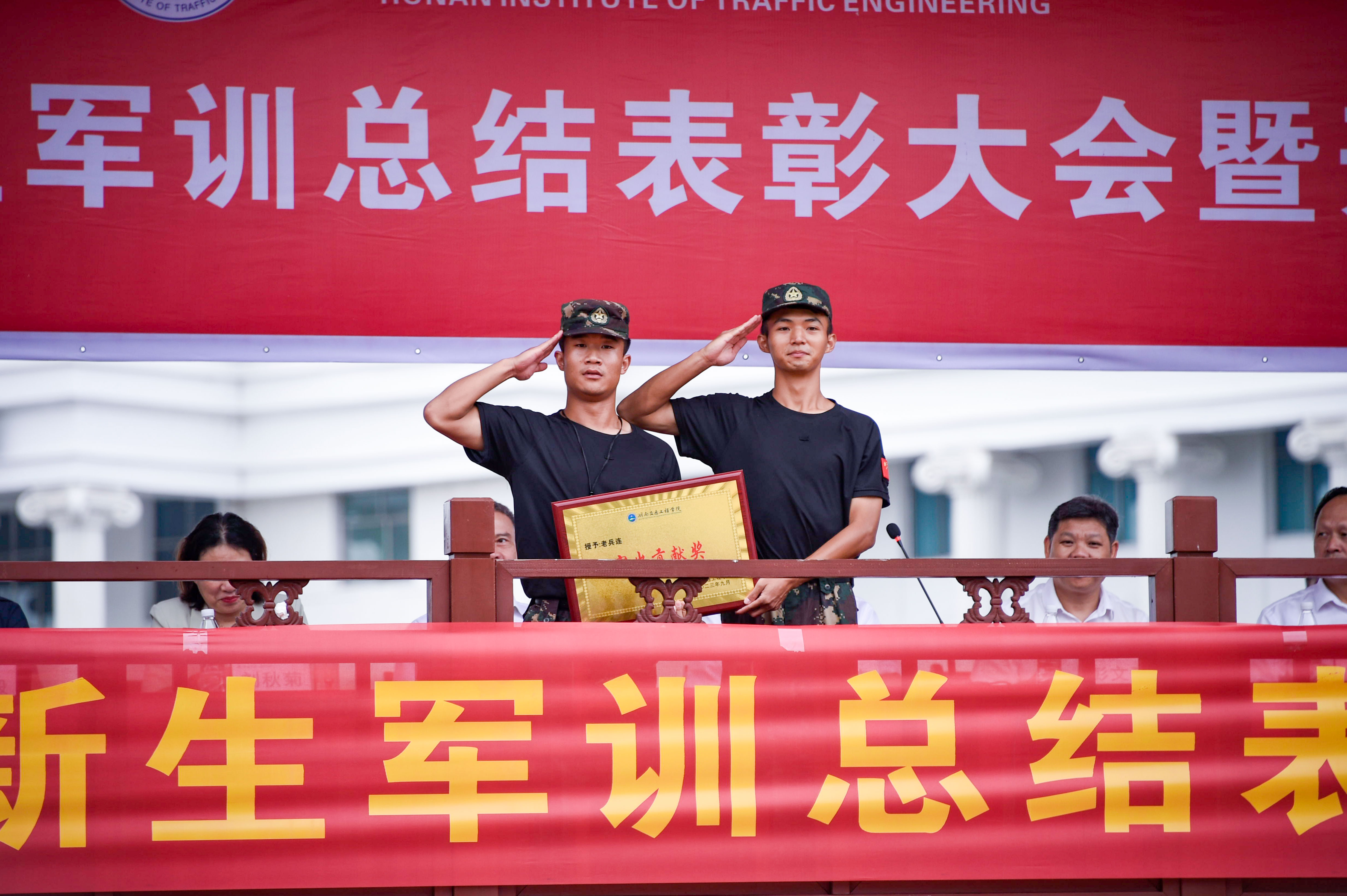随着军训指挥员的一声口令,参加军训的2023级新生进行军事训练汇报表演,展示15天的军训成果。运动场内外一片恢弘之势,一场智慧与毅力相互碰撞的盛宴在交工院校园上演。