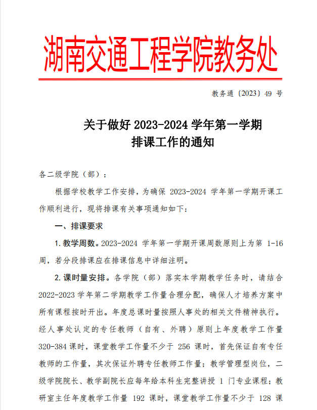 关于做好2023-2024学年第一学期实践教学排课工作的通知