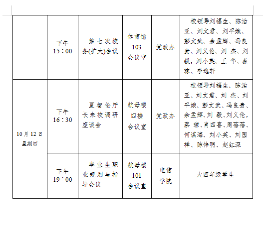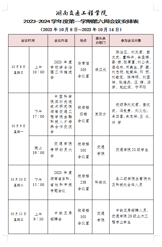 beat365唯一官方网站 2023-2024学年度第一学期第六周会议安排表