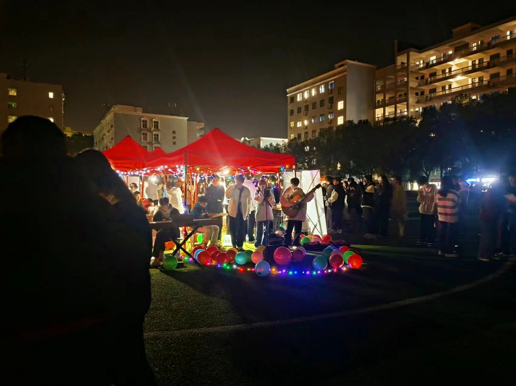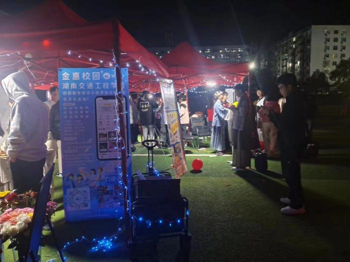 地推活动伊始,金惠校园工作室首先介绍了工作室项目、协会创办的初衷及招新要求,协会成员主动的和现场的同学们进行交流,了解大学生们的创业需求,吸取了大家好的建议,以便未来更好的服务校园。接下来还精心准备了生生互动环节,既可以收获创业知识,也可以得到创业的心灵感悟。参与活动者可以抽奖,免费领取礼品。伴随着美妙的歌声,欣赏着动人的舞姿,大家沉浸在这个难忘的活动中,别样的夜晚,星空似乎也闪烁着青春的气息。