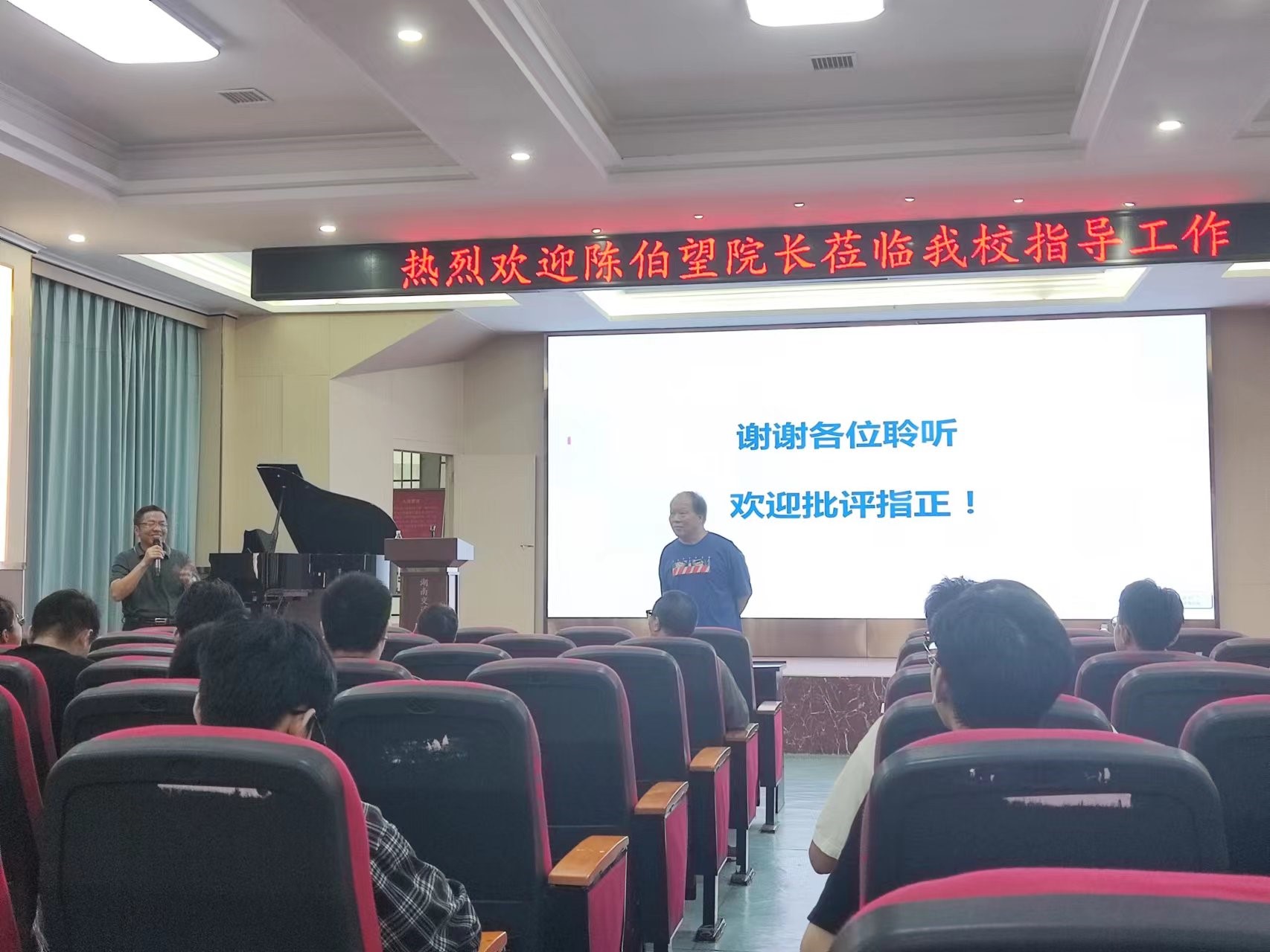讲座开始前,罗迎社院长为参加讲座的师生介绍了陈伯望院长,并对他的到来表示热烈欢迎,同时也希望参会师生能认真聆听,从此次讲座中吸收学术营养。