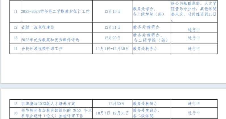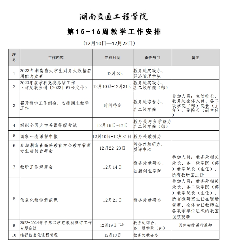 第15-16周教学工作安排