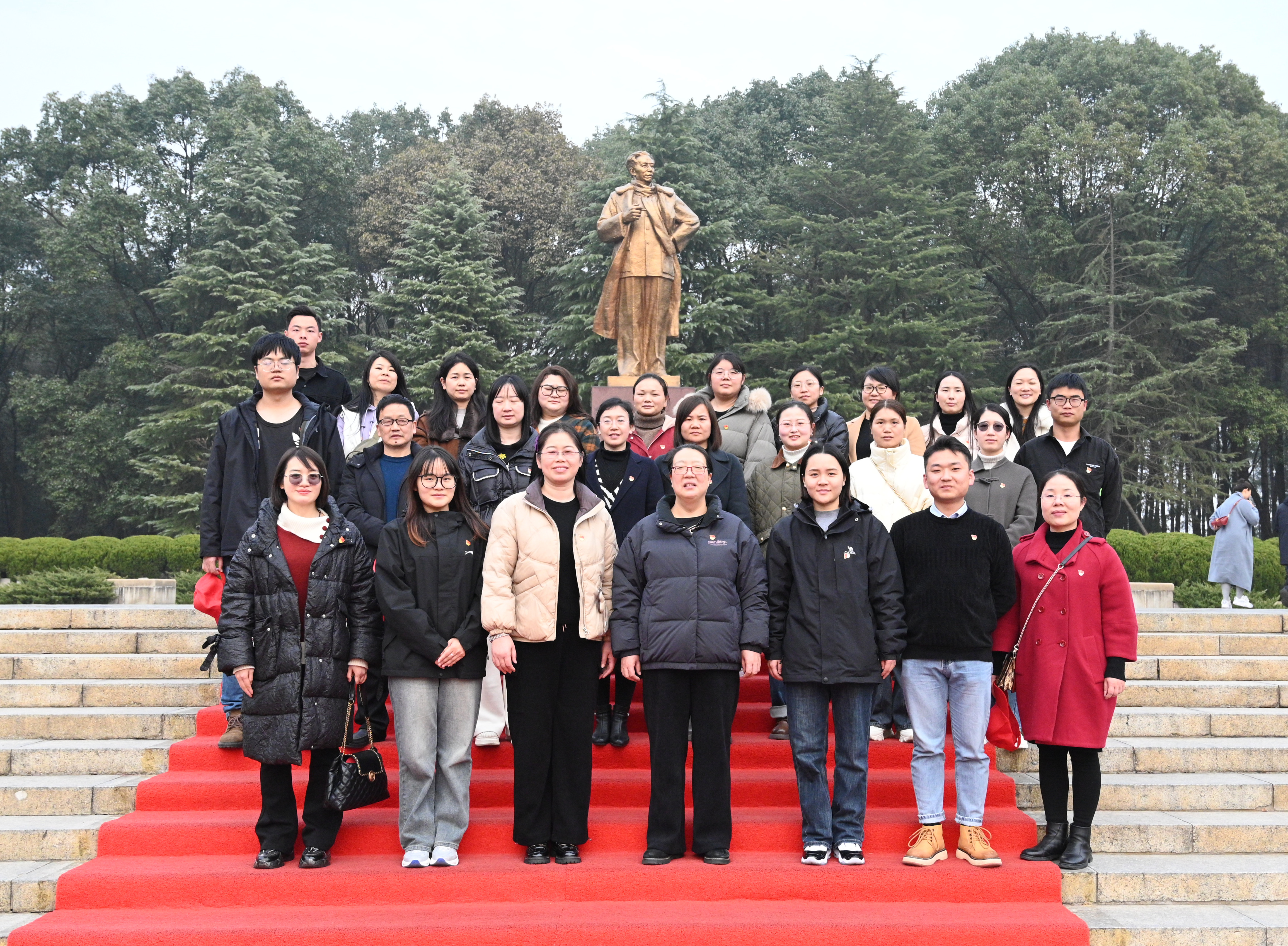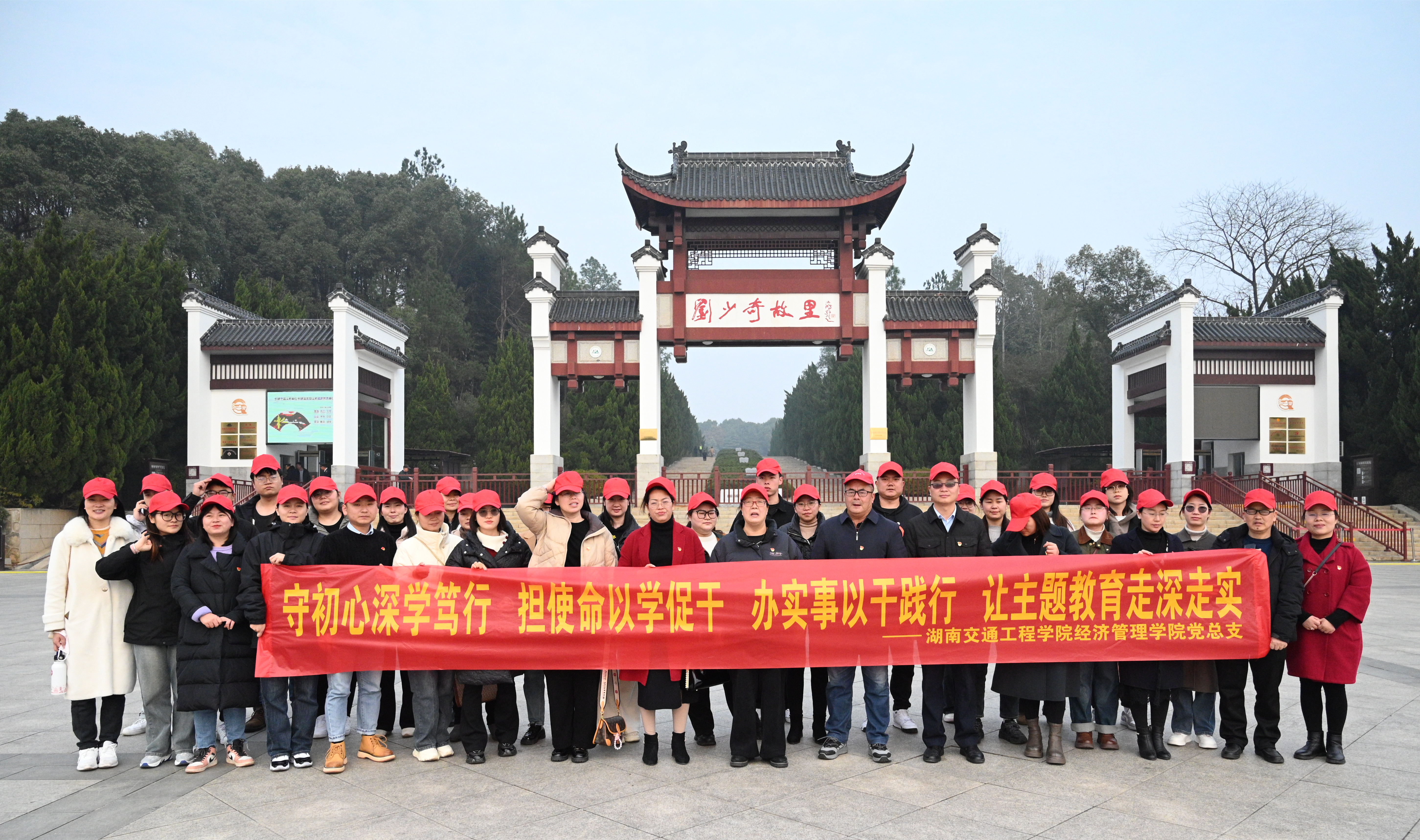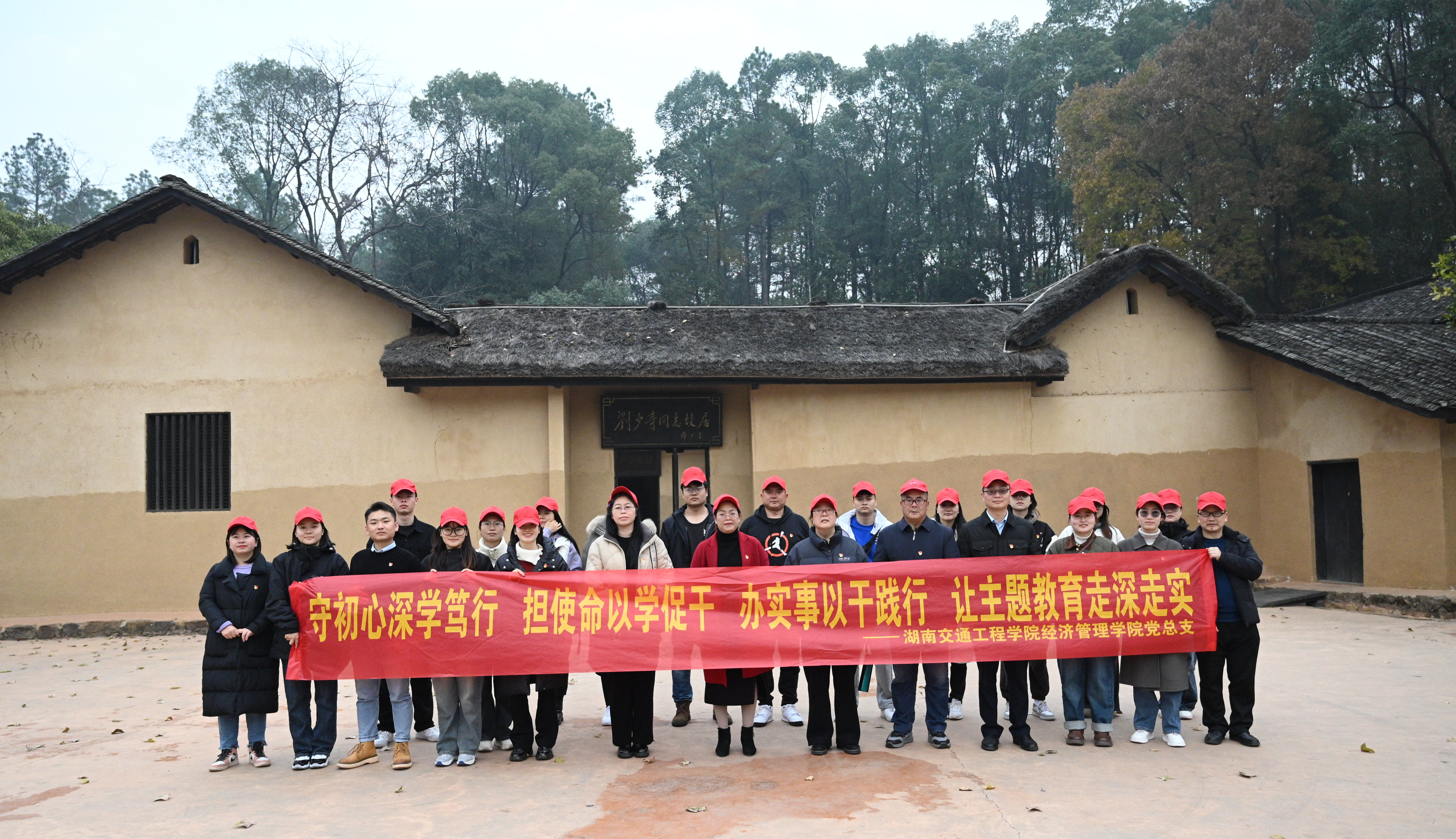 本网讯(通讯员 摄影 赵红深)为贯彻落实党中央有关开展学习贯彻习近平新时代中国特色社会主义思想主题教育的要求,积极弘扬革命精神、传承红色基因,激励广大党员坚定理想信念,12月29日,经济管理学院党总支书记赵荣华、院长朱忠祥携学院42个教工党员来到开国元勋刘少奇故里——宁乡市花明楼镇炭子冲村开展主题教育党日活动,深学笃行重走少奇故里, 以学促干传承红色基因。