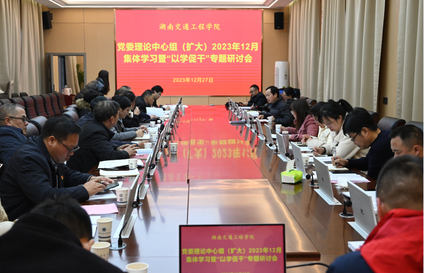 本网讯(通讯员 摄影 赵红深)12月27日下午,学校在航母楼四楼会议室举行12月集体学习暨“以学促干”专题研讨,校党委书记刘文君主持学习研讨并讲话。校党委委员,党务工作部门负责人,各党总支(直属支部)正副书记,各二级学院正副院长参加了学习研讨。