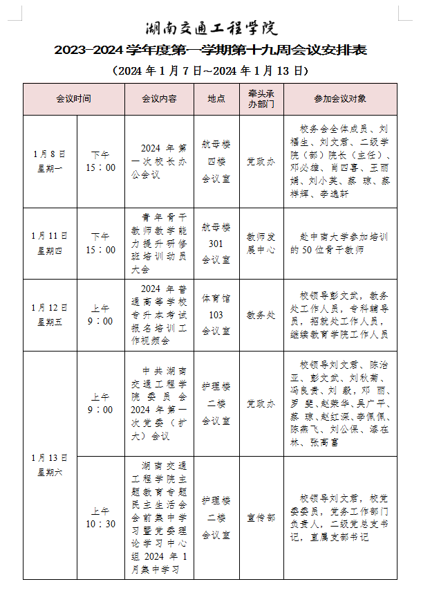 beat365唯一官方网站2023-2024学年度第一学期第十九周会议安排表