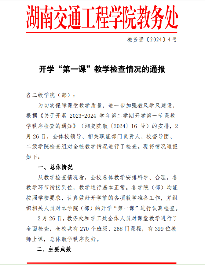 2023-2024学年第二学期开学教学检查通报