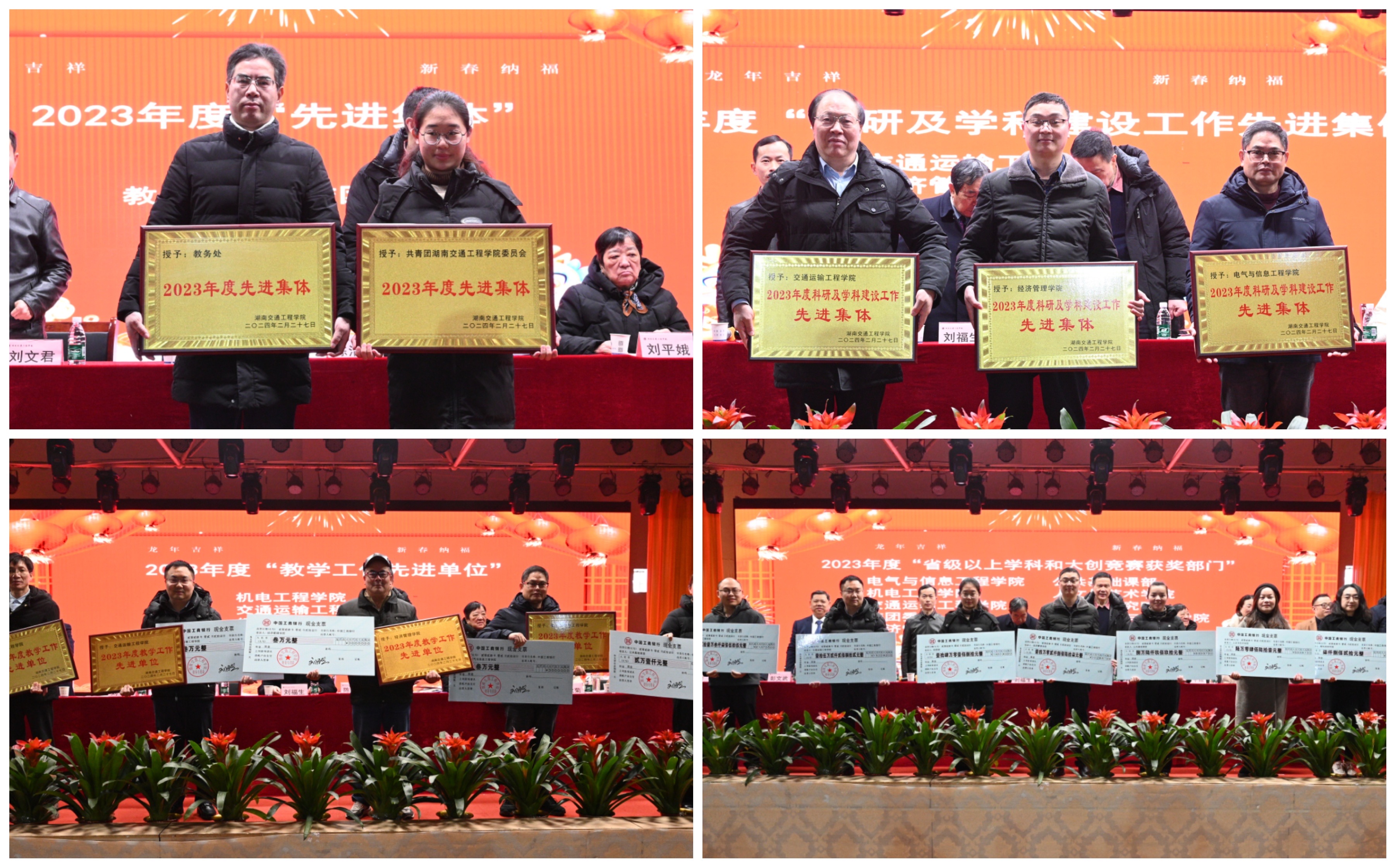 常务副校长彭文武宣读了五个表彰文件,《关于表彰2023年度先进集体、先进个人的决定》《关于2023年二级学院教学工作考核结果与奖励的决定》《关于表彰2023年度省级以上教学竞赛奖励教师名单的决定》《关于给2023年度省级以上学科和大创竞赛获奖的决定》《关于表彰2023年度科研及学科建设工作先进集体、先进个人的决定》。