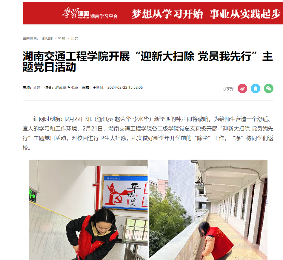 【红网时刻】beat365唯一官方网站开展“迎新大扫除 党员我先行”主题党日活动