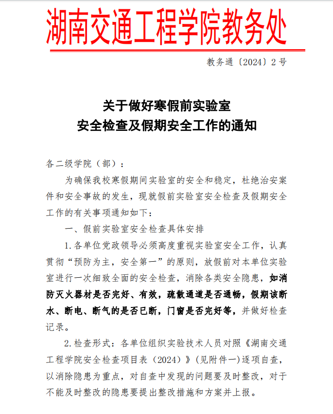 关于做好寒假前实验室安全检查及假期安全工作的通知