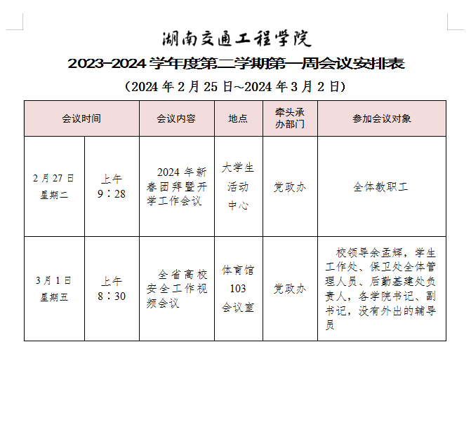 beat365唯一官方网站2023-2024学年度第二学期第一周会议安排表