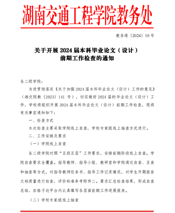 关于做开展2024届本科生毕业论文(设计)前期工作检查的通知
