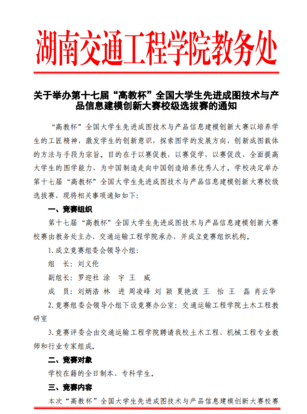 关于举办第十七届“高教杯”全国大学生先进成图技术与产品信息建模创新大赛校级选拔赛的通知 .pdf