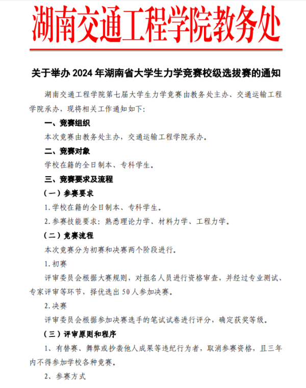 关于举办2024年湖南省大学生力学竞赛校级选拔赛的通知