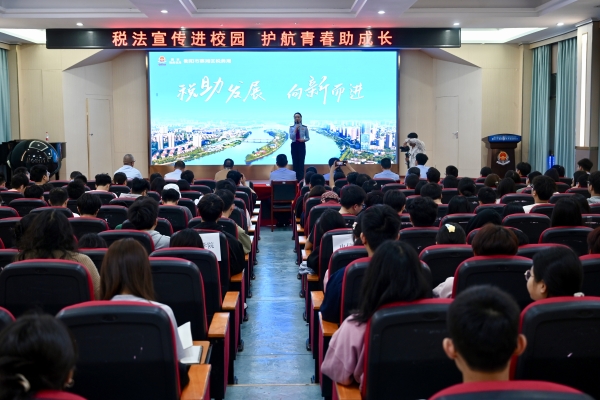 蒸湘税务局来beat365举行“税法宣传进校园,护航青春助成长”活动暨第33个税收宣传月启动仪式