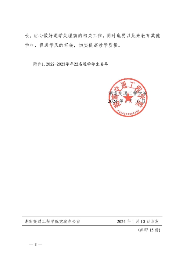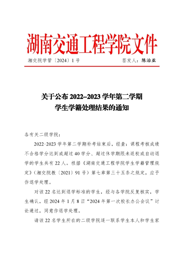 关于认真做好2022-2023学年学生学籍处理工作的通知(湘交院学管〔2024〕1号)