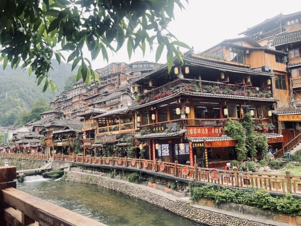 师生们还纷纷登上西江千户苗寨观景台,欣赏对面在层峦叠嶂上依山而建的鳞次栉比的千户苗家吊脚楼和千户苗家同时做饭时升腾起的袅袅炊烟,简直到了世外桃源。