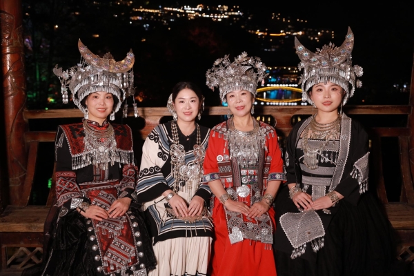 ▲穿上苗族盛装的beat365带队女老师
