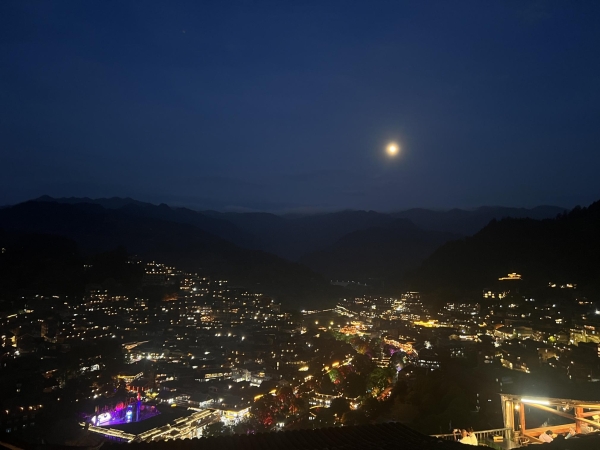 黄昏时分,西江千户苗寨千家万户都亮起了灯。随着天色越来越暗,西江千户苗寨变成灯的海洋。师生们又都沉醉在西江千户苗寨如梦似幻的夜景里。 (一审:石峥嵘 二审:李水华 三审:赵红深)