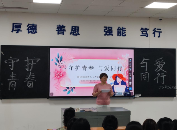 为倡导健康生活方式,关爱女生健康,加强女生安全防范意识,提高女生自我保护能力,医学技术与护理学院于523日晚,在教学楼202开展“守护青春,与爱同行”主题讲座。讲座由学生干事老师陈文蓉主持,学院党总支书记邓丽主讲。