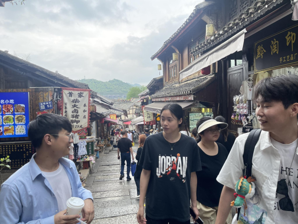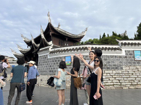 接着,师生们又走进贵阳市花溪区南部的国家级历史文化名镇,国家AAAA级旅游景区——青岩古镇。青岩古镇为明清两代军事重镇。青岩古镇街巷用石铺砌,民居也是石砌的围墙、柜台、庭院。镇容布局沿袭明、清格局,保存完好的朝门、腰门以及瓦屋面、重檐悬山、花木门,体现了明清时期的建筑风格。青岩油杉保护区有地球上仅存的青岩油杉活立木9000余株。师生们踏入这座古老的小镇,立刻被那充满古朴韵味的街巷和建筑所吸引,仿佛穿越回到了过去的岁月。漫步其中,大家充分感受着那份古老厚重、宁静悠远。