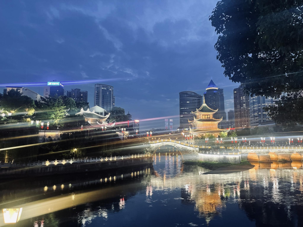 华灯初上夜,人声鼎沸时,师生们来到贵阳南明区的“青云市集”。在过去近30年时光里,“青云市集”承载了太多贵阳人的美食回忆,烤鱼、水饺、烤肉、炒饭……这里是许多贵阳人和外地游客经常“打卡”的美食夜市街,是贵阳名副其实的“深夜食堂”。集餐饮、休闲娱乐、文创市集为一体,以“老贵阳,新调调”为理念,集视、听、嗅、味、触为一体的综合性慢生活广场。这里热闹非凡,充满了现代的活力与烟火气息。师生们穿梭在熙熙攘攘的人群中,品尝着各种贵州特色美食,体验着当地的市井生活。
