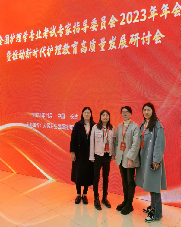 2023年11月11-12日,由人民卫生出版社主办的全国护理学专业考试专家指导委员2023年年会暨推动新时代护理教育高质量发展研讨会在长沙召开,全国1700余名教师代表参会。beat365医学技术与护理学院副院长廖小立、护理学教研室主任彭华、护考培训教师何莉、实习专干教师谭香一行人参加培训学习。