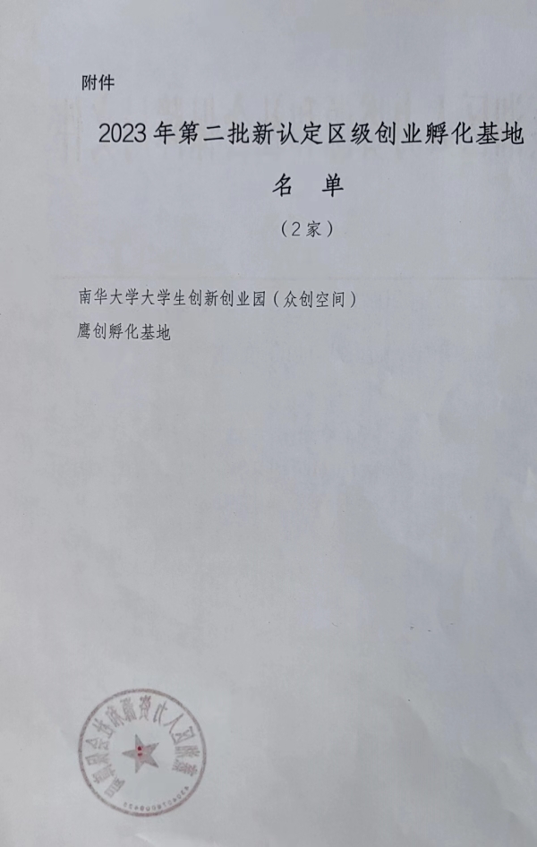 我院鹰创孵化基地获批2023年度第二批蒸湘区创业孵化基地