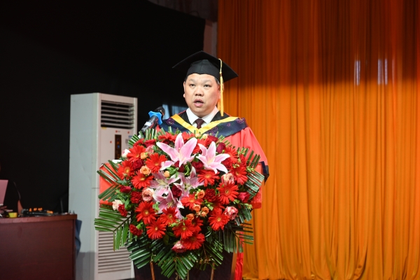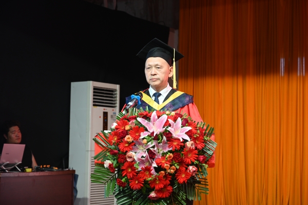 刘福生作精彩致辞。四年前,我们在这里召开开学典礼,欢迎你们来校学习;四年后的今天,我们再在这里相聚,为你们举行毕业典礼并授予学士学位,为同学们的大学生活画上圆满的句号,为同学们即将开始的人生旅程加油鼓劲。在此,我谨代表学校董事会向顺利毕业的2024届全体毕业生致以最热烈的祝贺,向付出辛勤劳动的各位老师们表示衷心的感谢!向抚养你们长大、成人的父母亲表示由衷的敬意!大学是生命中最灿烂的时光。作为学校董事长,我很高兴能陪伴你们一起走过,尽管我们在一起的时间不多,但在我的内心深处一直关注着你们的成长。在校期间,学校尽最大努力为大家服务,但也会有一些不足让大家抱怨,有一些遗憾还来不及弥补,所幸这些遗憾和瑕疵没有阻挡同学们奋进的脚步。今天,大家毕业了,新的征程将有新的挑战。前途是光明的,道路是曲折的。希望同学们持续学习创新,实干坚定前行。志存高远,脚踏实地,积极投身到新时代中国特色社会主义伟大事业当中,在奋斗中创造精彩。董事长朴实的话语,谆谆的教诲,台下多次响起雷鸣般的掌声经久不息。