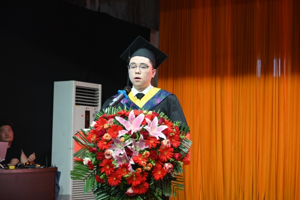 毕业生代表机电工程学院自本2004班向俊威致毕业感言,“今朝毕业,不诉离伤,他日重逢,各领风骚”。他回顾了自己在机电工程学院走过的4年求学之路,表达对母校的感恩、不舍和依恋;表示今后将带着母校的期望,勇担时代重任,努力成长为一名有理想、敢担当、能吃苦、肯奋斗的新时代好青年,奔赴祖国最需要的地方去,施展抱负、建功立业。