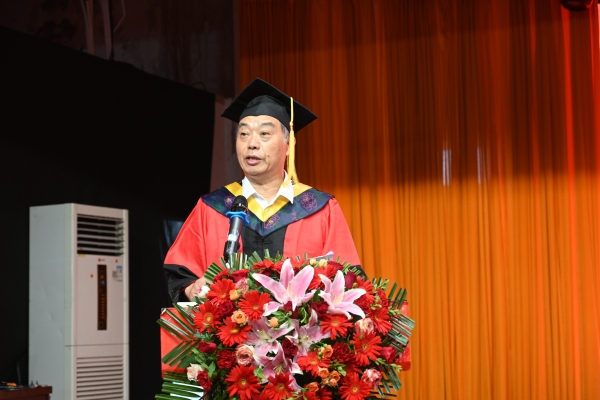 山长水阔,背上行路锦囊。校学位评定委员会主席、校长陈治亚以《行之于途而应于心》为题作精彩致辞。他代表学校全体师生向学有所成、顺利毕业的2024届全体毕业生表示热烈祝贺,为他们的成长与进步感到欣慰。他指出,2024届毕业生是与时代同频共振的一届毕业生、是与学校携手共进的一届毕业生、是生逢其时、重任在肩的一届毕业生。同时,他饱含深情地对毕业生们寄语两点期望:一是认识你自己。认识自己就是认识世界,我们只有在广阔的天地才能真正的人生自我,认识自己就要了解自己的生理、心理的优劣势,让自己符合公认的道德和人性。二是成为你自己。通过自我观察和认识,我们通常可以发现自己优势、弱点和热情所在,同时我们应该尝试新生事物和经历,以扩大自己的视野,从而更好的了解自己的兴趣和追求。他建议同学们步入社会以后要多抽一点时间,多读一些哲学与世界经典,不负韶华、不负时代,敢于有梦、勇于追梦,全心全意把每一项工作做好就是不平凡,把每一件小事做好就是大事业。他表示,“湘交院”是学子们梦想启航的地方,无论走向何处、行至多远,母校永远是大家的坚强后盾和精神家园,母校永远会为大家祝福、给大家力量,欢迎同学们常回家看看。