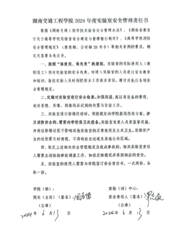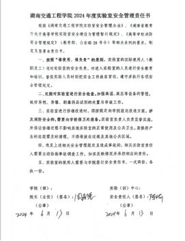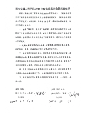 会上,根据学校文件要求,实行实验(实训)室安全责任书“三级”承诺制,在校-院级(彭文武—罗迎社)已完成安全责任书签订的基础上;学院-实验室(中心)(罗迎社—周孝德)签订了安全责任书;实验室(中心)-实验员(周孝德—各个实验员)签订了安全责任书。