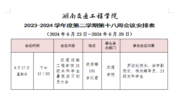 beat365唯一官方网站2023-2024学年度第二学期第十八周会议安排表