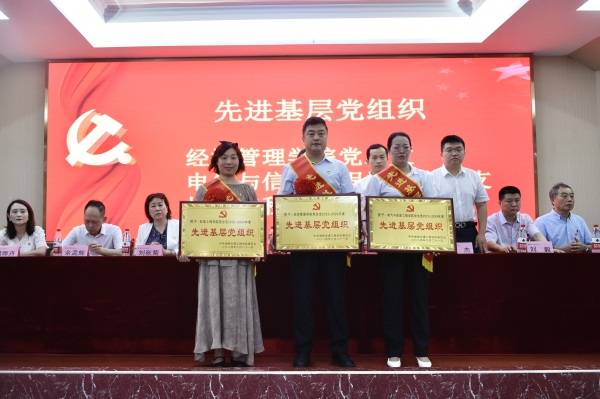 刘文君代表校党委向受到表彰的先进集体和优秀个人表示热烈祝贺,向全校各级党组织和全体共产党员致以诚挚的节日问候,向为学校改革发展和迎评促建工作作出重要贡献的全体党务工作者和党员表示衷心的感谢。他回顾学校过去一年的党建工作,用三个“实”字进行了概括。一是夯实基础,推进党政工作融合,党支部的战斗堡垒日益坚强,学校获评省两新领域标杆党组织。二是抓实工作,推动学习贯彻习近平新时代中国特色社会主义思想主题教育走深走实,党的自身建设不断加强。三是取得实效,教师的教育教学能力显著提升,学生综合素质显著提高,毕业生就业率、考研率均创历史新高,学科竞赛、媒体聚焦精彩纷呈。他指出,学校将进一步“全面加强党的领导”与“构建现代大学治理体系”有机结合,将党员重大一线历练与日常表现紧密结合,坚持党建与业务双融双促,同向发力,真正在聚力攻坚中发挥基层党组织的战斗堡垒作用和党员的先锋模范作用。他要求党员干部要将广大师生员工的利益作为一切工作的出发点和落脚点,勇于担当、善于作为。要有攻坚克难的精神,真正能够将学校的决策部署落实到行动上,落实到最基层;要有脚踏实地的作风,从群众中来到群众中去,从群众中聚焦工作重点、提升工作效能;要有开拓创新的能力,面对办学的新形势新阶段,做善思善谋、善做善成的践行者。站在新的历史起点上,我们肩负的使命光荣而艰巨。刘文君号召,以受表彰的先进典型为榜样,不忘初心,牢记使命,锐意进取,以高质量党建引领学校高质量发展,奋力推动学校迈上新台阶,为湖南三高四新战略、教育强省建设和衡阳区域中心化做出最大的贡献。