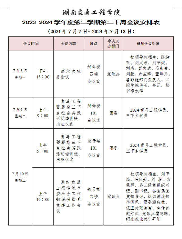 beat365唯一官方网站2023-2024学年度第二学期第二十周会议安排表