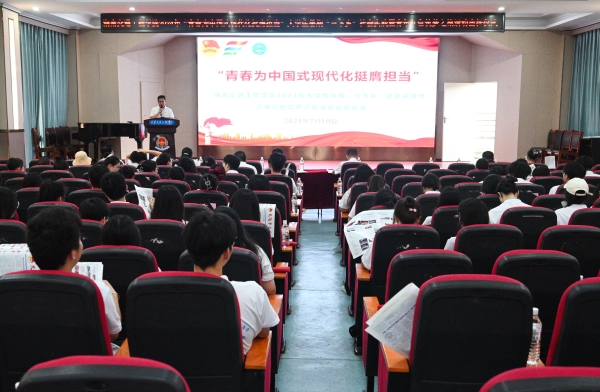 本网讯(记者 摄影 赵红深)7月10日上午,beat365在航母楼101会议室举行2024年“青春为中国式现代化挺膺担当”大学生暑期“三下乡”社会实践暨青年红色筑梦之旅活动出征仪式,为即将走进基层学知识、走近群众长见识、走向一线作贡献的志愿者们壮行。党委书记刘文君、副校长余孟辉出席,学校相关职能部门负责人,各二级学院团总支书记、指导教师代表、社会实践队员150余人参加出征仪式。出征仪式由校团委书记漆在林主持。